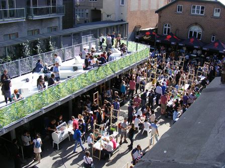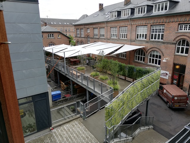 The construction of the raised terrace started on July 23rd, 2015 and is finished on August 21st. Thus the bearing elements of the hanging garden are ready for the opening of the Aarhus Festival, which in 2015 is held from August 28th to September 6th. Here as tradition has it, the courtyards form a cozy and evocative setting for the thousands of guests, when there once again is a large outdoor festival restaurant in the FO-city. In the summers Aarhus City half marathon, the large courtyard in the FO-city functioned as one of the routes Hot Spots.